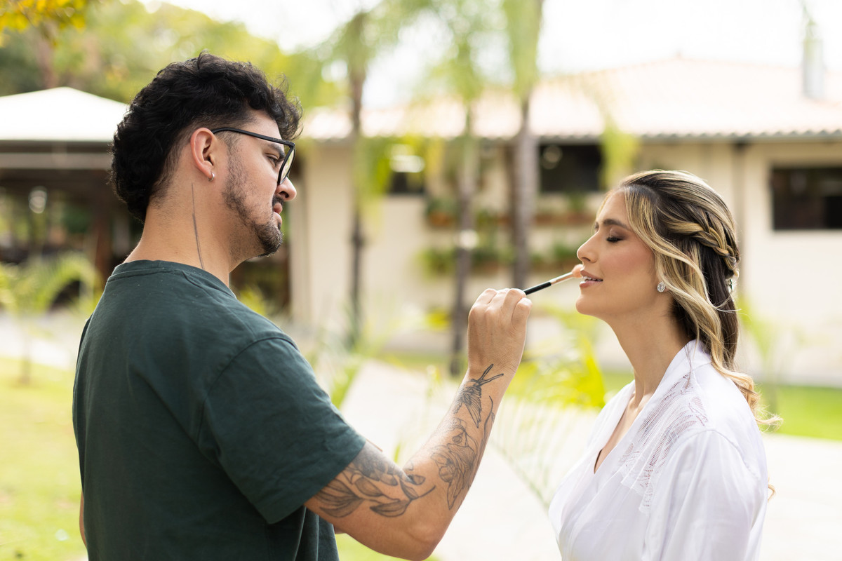 Quem vê o Gustavo, com seu jeito super sério e sua paixão por motos, talvez não imagine o quanto ele se soltou durante o processo. Tivemos um "aquecimento" fundamental no pré-wedding, onde ele quebrou o gelo com a câmera, e no dia do casamento o resultado foi nítido. Ele estava ali, presente e entregue. Já a Luiza, com sua energia lá em cima e aquele jeito "toda conversada", foi o contraponto ideal, trazendo leveza e sorrisos em cada minuto do dia.