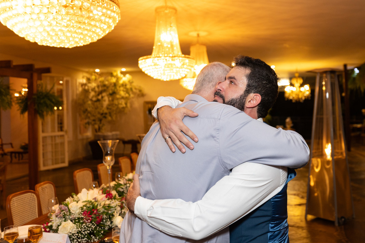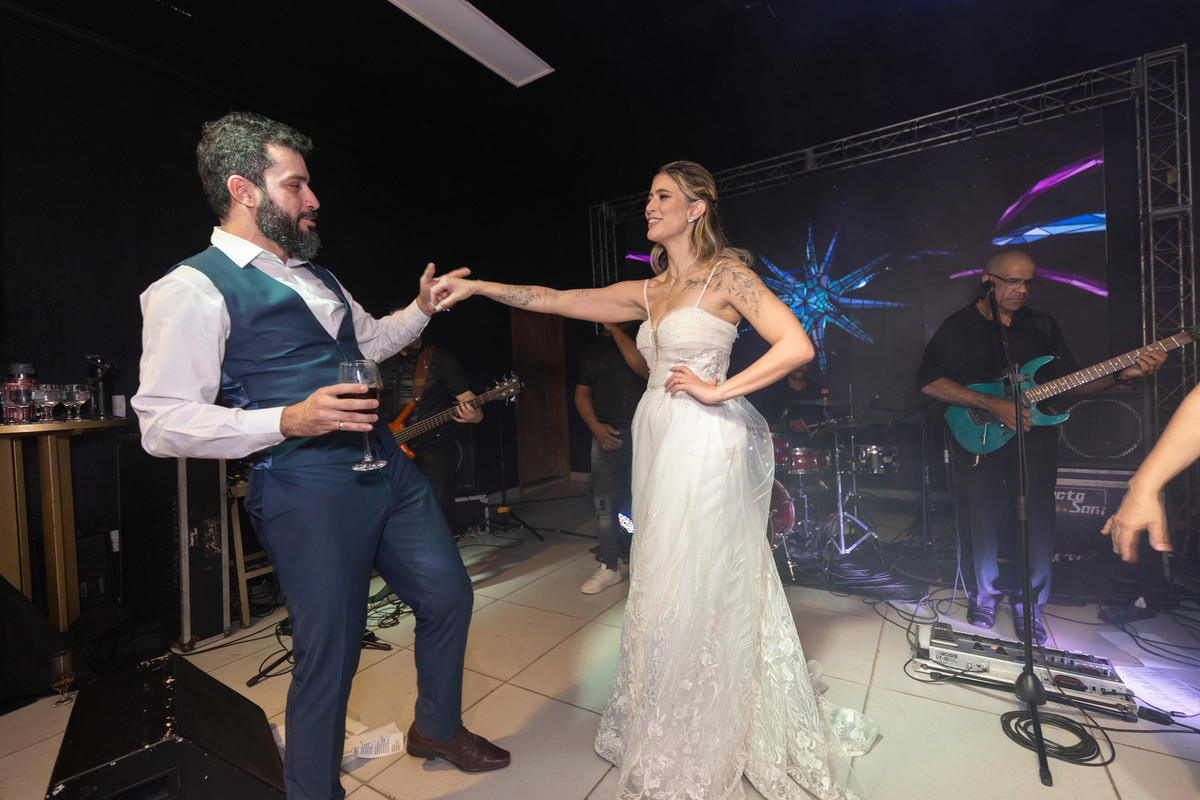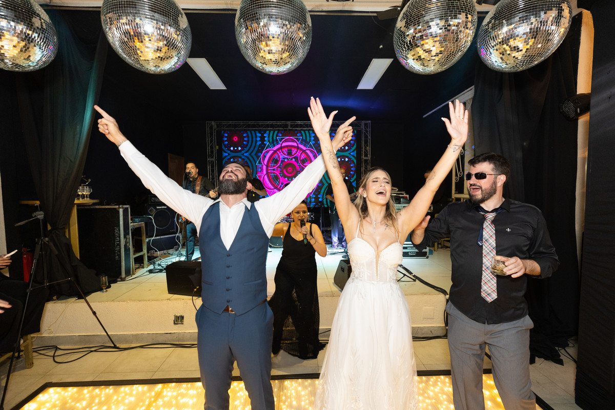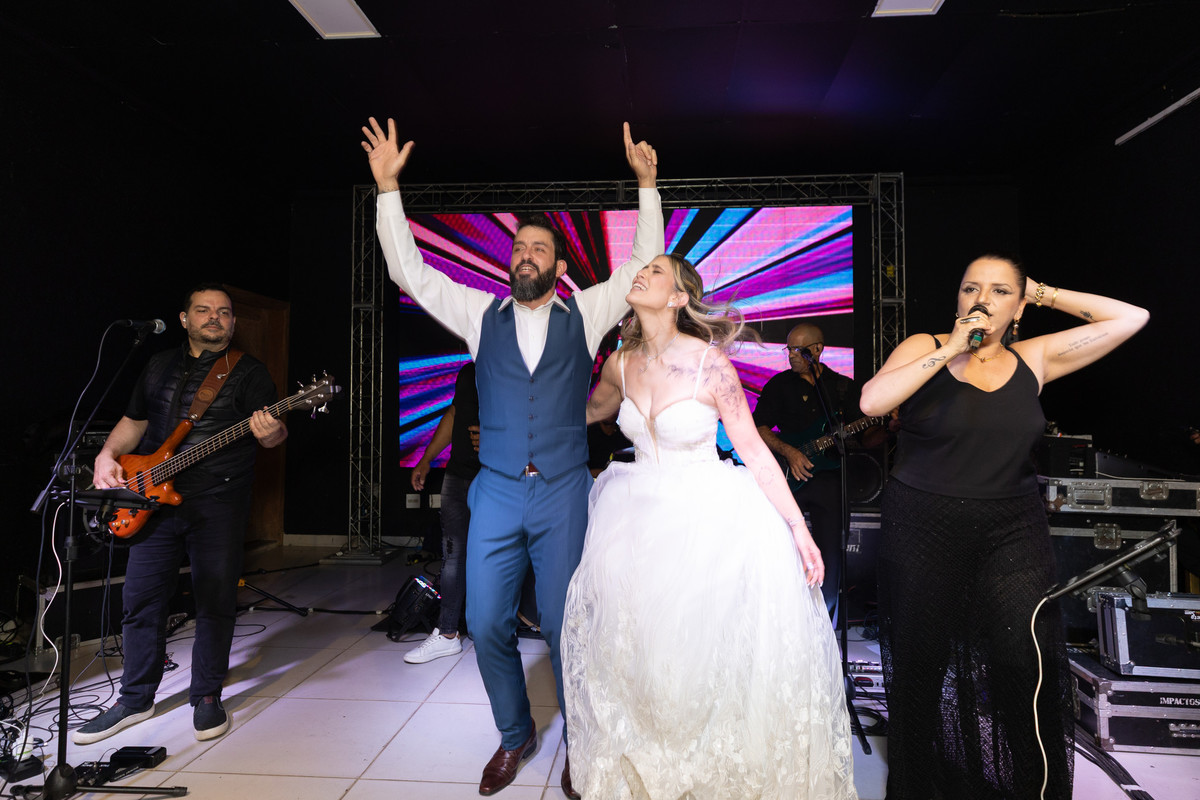 Na recepção, o clima de fazenda deu lugar a uma comemoração intensa. Foi gratificante ver como aquele casal que começou o ensaio mais tímido, terminou a festa aproveitando cada segundo da pista de dança com os amigos. É por isso que acredito tanto no ensaio pré-casamento: ele cria a confiança necessária para que, no grande dia, a única preocupação seja viver o momento.